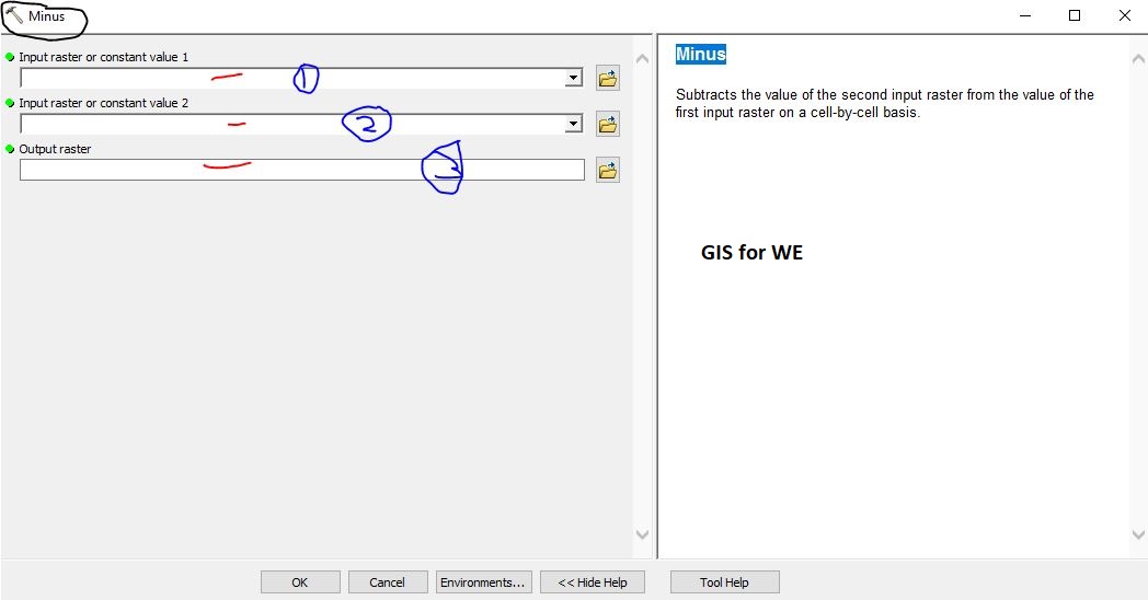 Minus Tool, Raster Math Toolset, 3D Analyst Toolbox